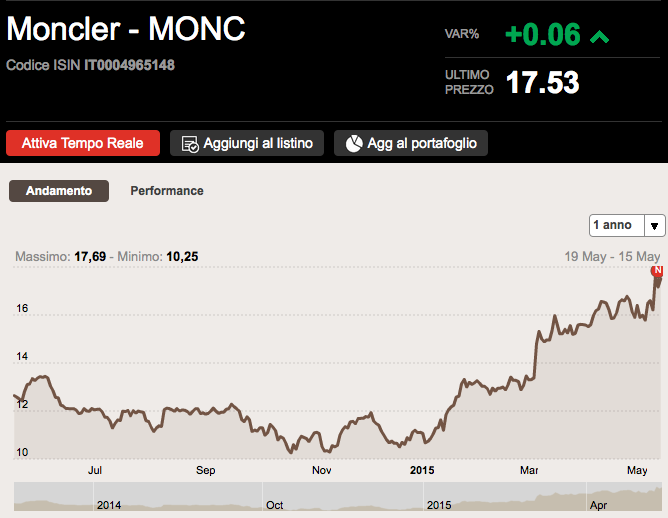 Infatti, è di qualche giorno fa la notizia che il primo trimeste del 2015 per Moncler è stato decisamente positivo, con un aumento percentuale dei ricavi del 69% rispetto al 2o14.