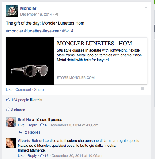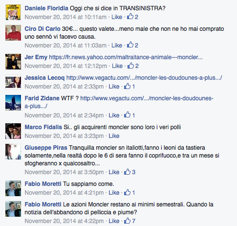 Come si può osservare, alcuni utenti riportavano la notizia anche da siti stranieri: eppure, gli effetti apocalittici previsti non si sono visti. Così come non si sono osservate reali operazioni di risposta alla crisi d’immagine. A parte un comunicato sul sito di prodotto (leggibile ancora oggi, grazie a una sezione dedicata solo sul sito italiano), non sembra esserci stato un particolare intervento da parte di Moncler.